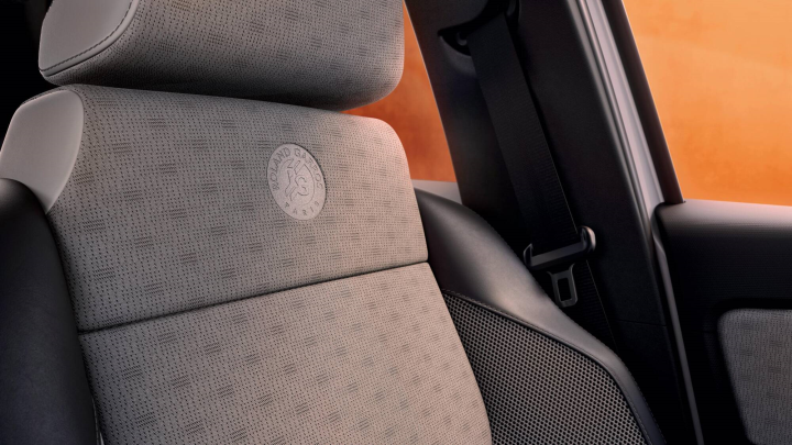 Z kolei we wnętrzu wyróżnia się oryginalna jasnoszara tapicerka o jednocześnie gęstym i eleganckim splocie, która po części przywodzi na myśl sportową odzież techniczną, a po części tapicerkę meblową. Tkanina pochodząca w 100% z recyklingu została połączona z ażurową siatką, która tworzy na oparciu wzór przypominający literę „H”. Całość podkreślają boczne części foteli pokryte niebieską tkaniną Refined, podobnie jak podłokietnik. Na oparciach przednich foteli widnieje logo Roland-Garros tłoczone na gorąco.