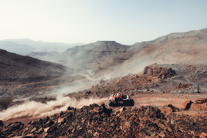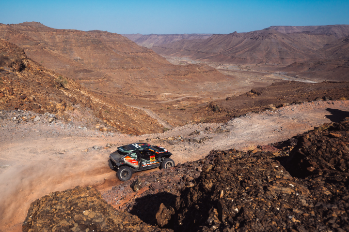 Heading inland and north towards AlUla, the opening 200 kilometres of today’s more mountainous stage were characterised by myriad changes of pace with the route switching between fast tracks and the winding, rocky sections of the Hedjaz Mountains. The hilly terrain eventually gave way to a faster final stretch on wide, sandy plains prior the first dune section of this year’s Dakar Rally.