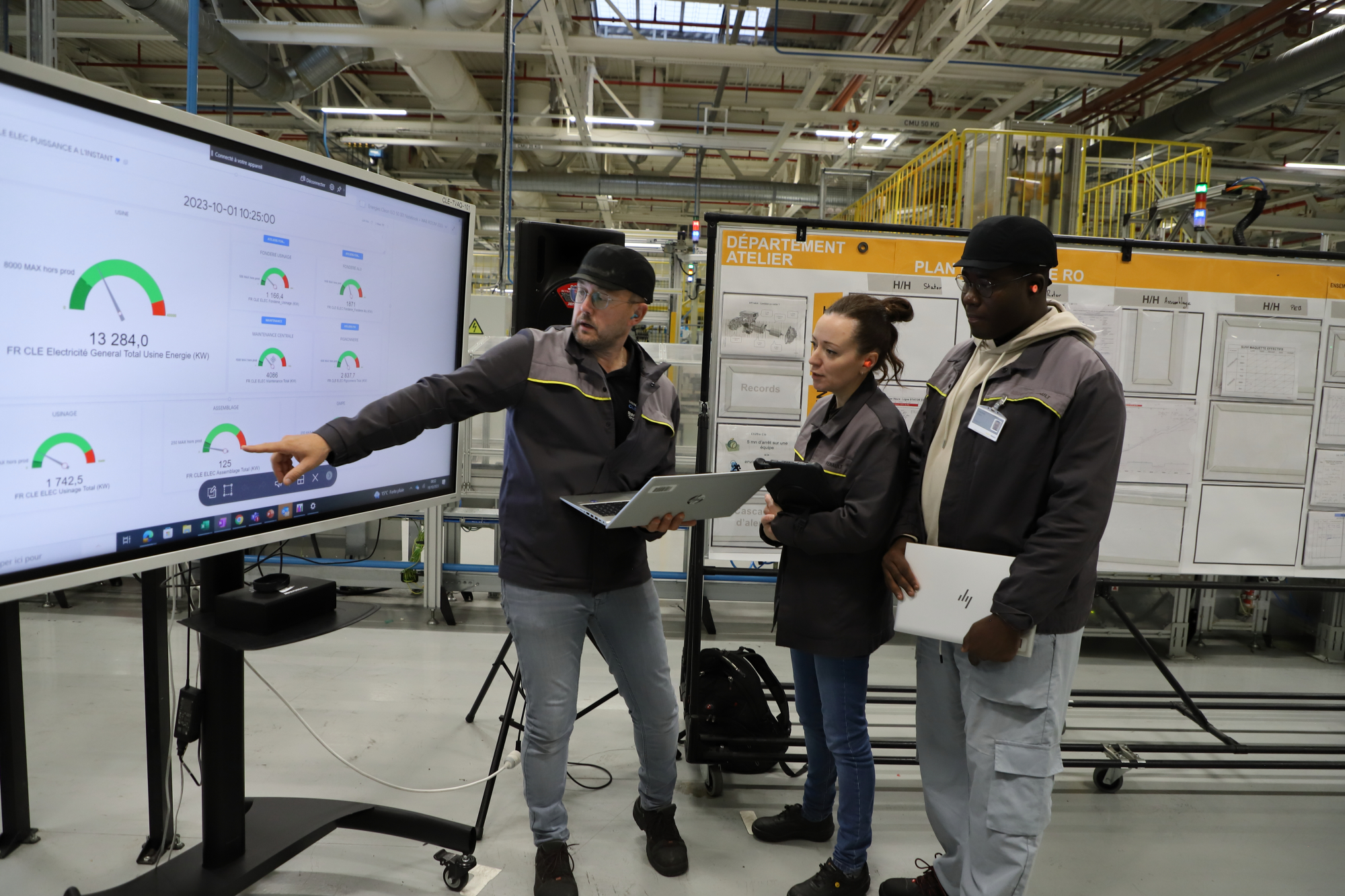 Sébastien: „Zakłady przemysłowe są z natury energochłonne”. W 2021 roku zużycie energii w europejskich zakładach Grupy Renault wyniosło 4 TWh, z czego 2,1 TWh – we Francji. Odpowiada to rocznemu zużyciu energii elektrycznej w mieście liczącym około 2,2 miliona mieszkańców, na przykład takim jak Paryż (nie licząc przedmieść).