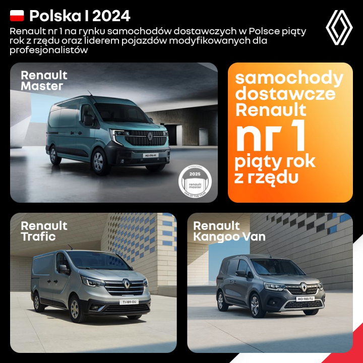 W segmencie lekkich samochodów dostawczych Renault pozostaje numerem 1 na polskim rynku oraz utrzymuje pozycję lidera w samochodach zabudowywanych.