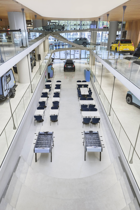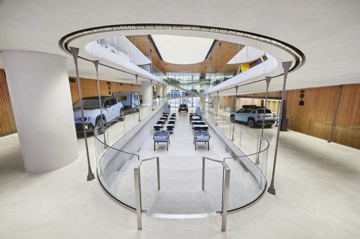 • Dziś po raz kolejny Renault nadaje temu legendarnemu miejscu nowy wymiar i odważną formę architektoniczną, której centralnym elementem jest owalna, organiczna przestrzeń w kształcie spirali inspirowanej drogą – naturalnym środowiskiem Renault.
