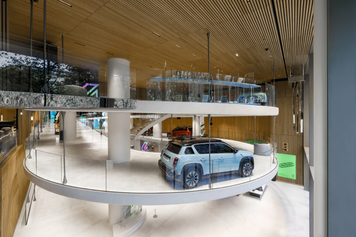 Centrum défilé renault® the carwalk będzie czymś więcej niż tylko salonem ekspozycyjnym – to prawdziwe, nowoczesne miejsce życia urządzone na powierzchni 2260 m2 w samym sercu Pól Elizejskich. Zostało zaprojektowany jako laboratorium przyszłych form mobilności. Przytulne wnętrze o łagodnych liniach zachęca do spacerów i odkrywania przestrzeni podzielonej na kilka stref: plac centralny, butik z gadżetami The Originals Store, taras kawowy i spiralną rampę przeznaczoną do eksponowania samochodów z gamy Renault, kultowych modeli i pojazdów koncepcyjnych.